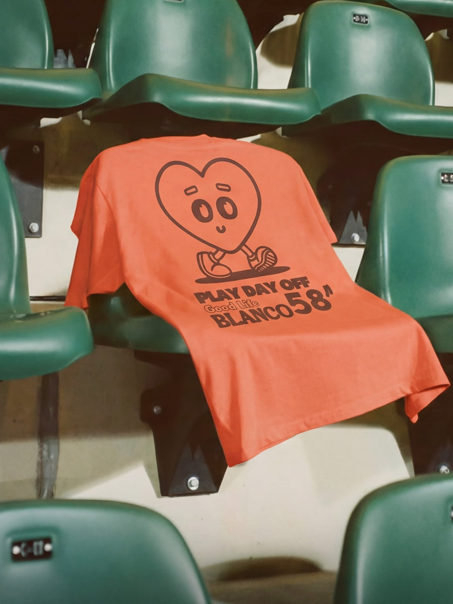 Round neck T-shirt in cotton jersey with rust orange print on the back