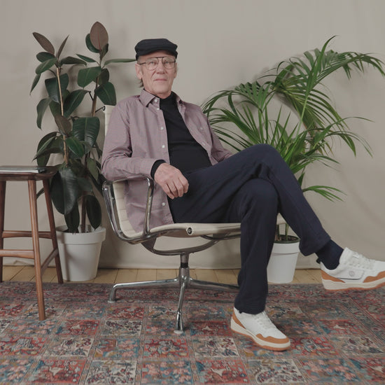 - Insignia tono sobre tono en color índigo en el bolsillo del pecho